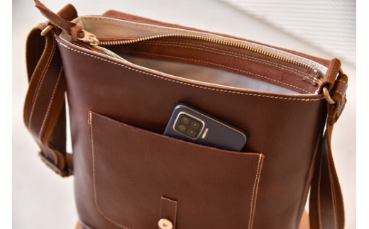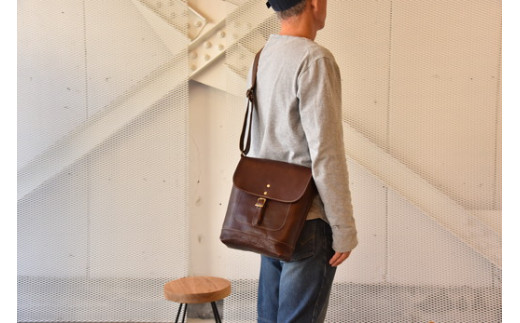 リッチオイルレザー(岡喜近江牛レザー)で作った ショルダーバッグ ダークウォルナット【CC24W】