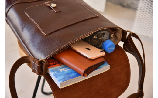 - リッチオイルレザー(岡喜近江牛レザー)で作った ショルダーバッグ ダークウォルナット【CC24W】