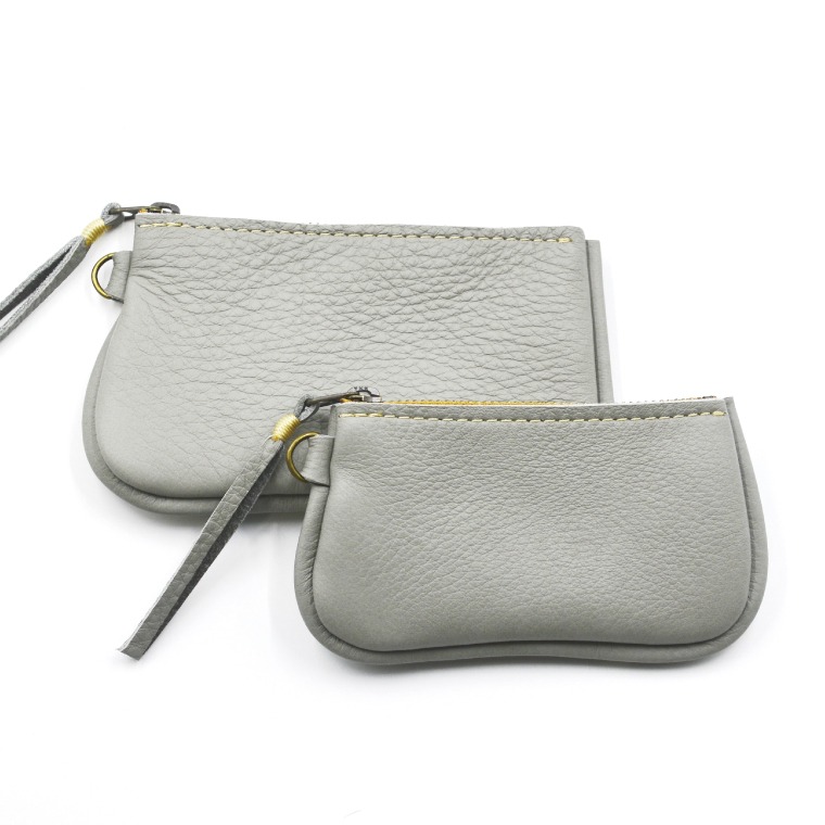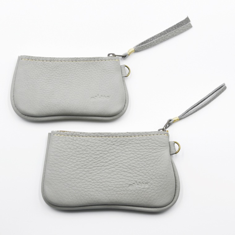 - 益子の革工房maharoのファスナーコインケース・カードケースセット ライトグレー|栃木県 益子町 ふるさと納税 コインケース カードケース 2個セット 牛革 手作り(AX133-4)