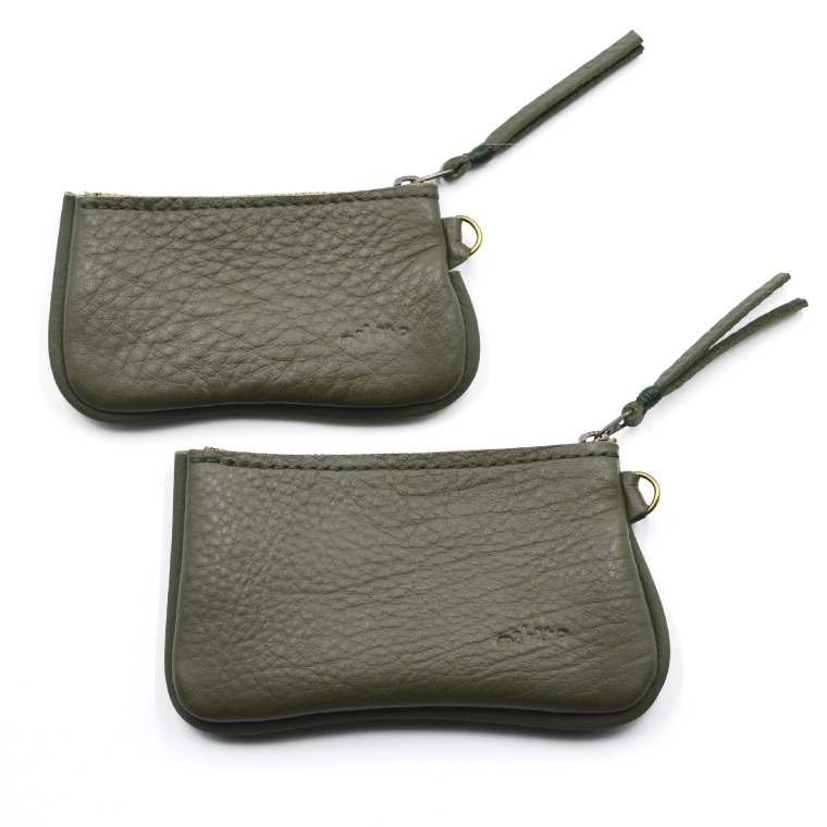 益子の革工房maharoのファスナーコインケース・カードケースセット オリーブグリーン|栃木県 益子町 ふるさと納税 コインケース カードケース 2個セット 牛革 手作り(AX133-6)
