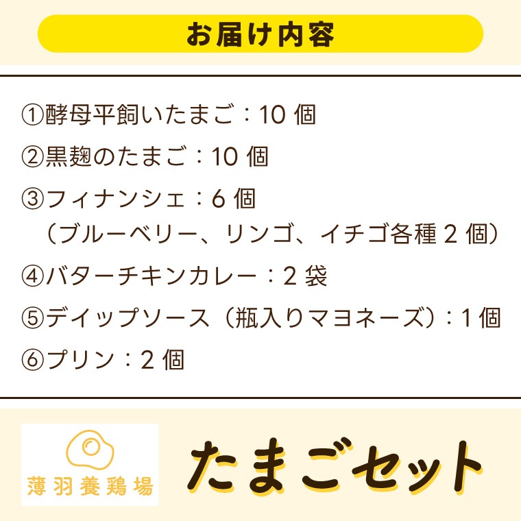- \薄羽養鶏場の濃厚たまごを使用/ たまごセット 濃厚たまご&絶品加工品 6点セット|栃木県 益子町 たまご 卵 タマゴ 平飼い 酵母平飼い 人気 濃厚 食べチョク カレー チキンカレー プリン とろたまぷりん フィナンシェ 焼き菓子 ディップソース (BC009)
