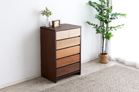 - 【東馬家具】カンザス 60チェスト BR【木目 天然素材 6段 グラデーション 収納力 上質 棚 完成品】(H060634)