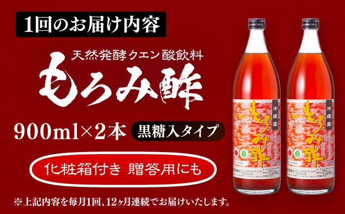 - 【全12回定期便】天然発酵クエン酸飲料 もろみ酢 (黒糖入り) 2本入り (900ml×2本) 黒糖 健康飲料 健康食品 クエン酸 国産 沖縄市 / 新里酒造株式会社[BCAS024]