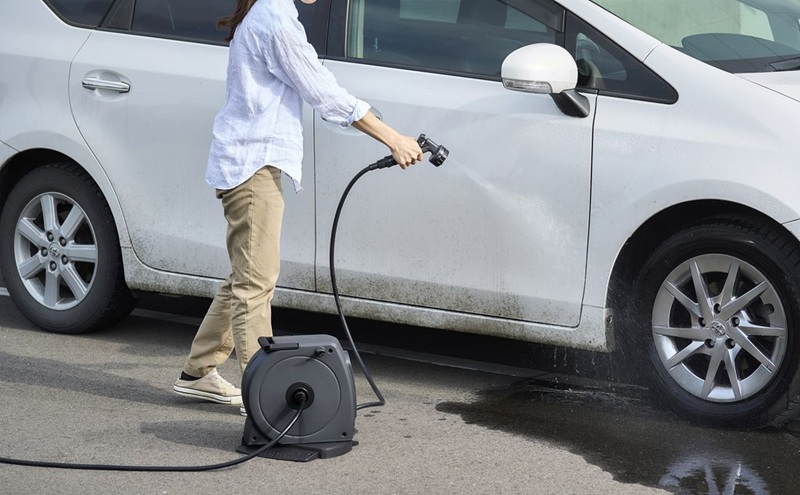 - フルカバーホースリールJET 15M FHJー15 ダークグレー/ブラック ホース ホースリール 散水ホース 水まきホース 15m フルカバー カバー付き 水やり 水撒き 散水 ガーデニング 家庭菜園 洗車 掃除 アイリスオーヤマ 新生活