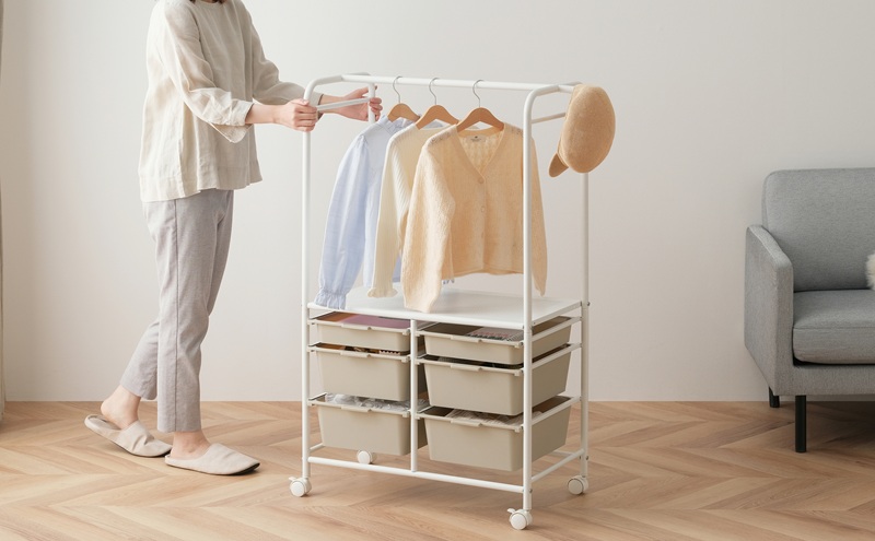 - キッズ収納ハンガーラック KHR-800 ホワイト/ベージュ ハンガーラック 収納 キャスター付き 子ども部屋 リビング 子供 頑丈 スリム ランドセルラック 棚付き おしゃれ おもちゃ ラック ボックス かご 引き出し ワードローブ 衣装ケース 洋服 ペット