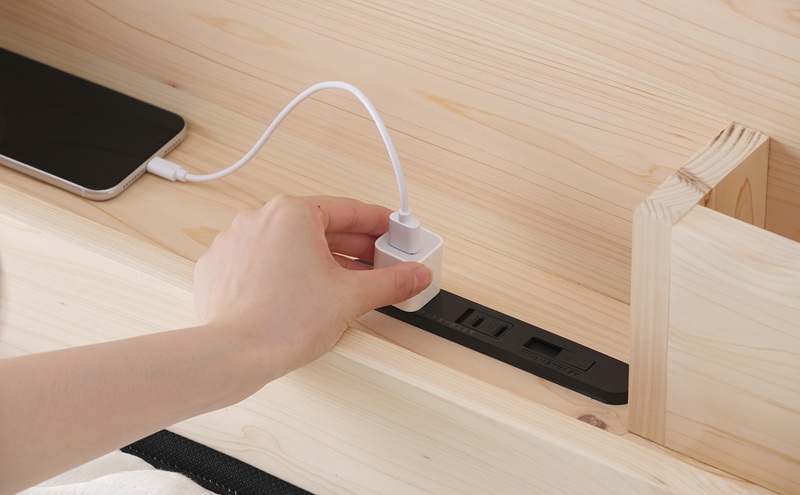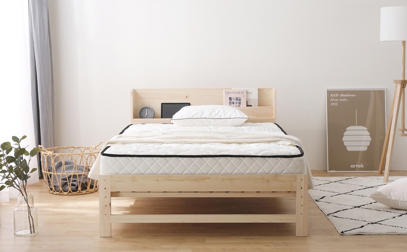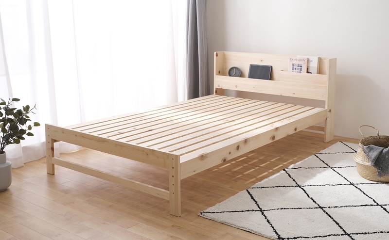 - ベッド 総ヒノキすのこベッド HSBM-SD ナチュラル すのこ セミダブル すのこベッド 宮付き ひのき 檜 ベッドフレーム 収納 ヘッドボード ヘッドボード付き コンセント付き USBポート パイン材 高さ調節 高さ調整 調節 調整 通気性 アイリスオーヤマ