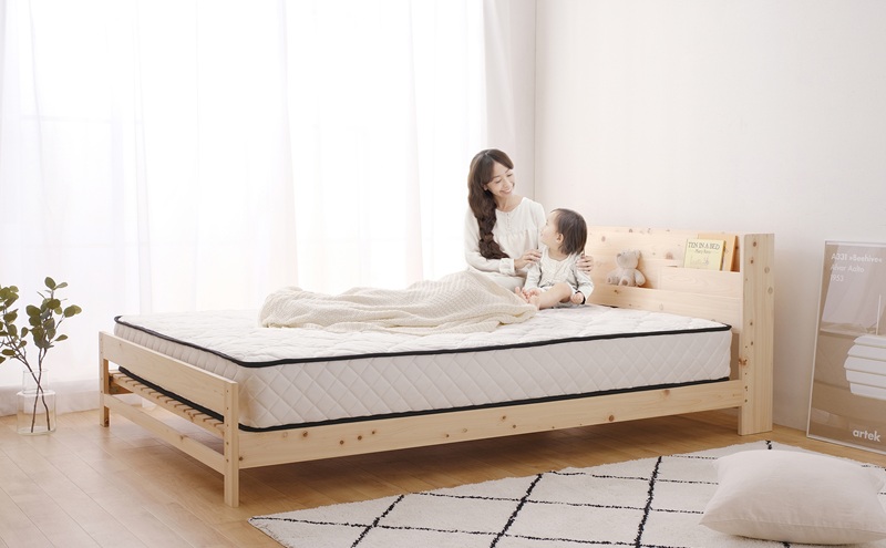 - ベッド 総ヒノキすのこベッド HSBM-D ナチュラル すのこ ダブル すのこベッド 宮付き ひのき 檜 ベッドフレーム 収納 ヘッドボード ヘッドボード付き コンセント付き USBポート パイン材 高さ調節 高さ調整 調節 調整 通気性 アイリスオーヤマ