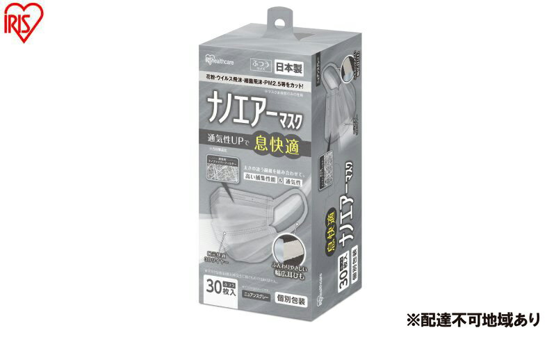 - 【ふるさと納税】【30枚入り×4箱】マスク ナノエアーマスク ふつうサイズ 30枚入 PK-NI30LXH ニュアンスグレー 不織布 日本製 アイリスオーヤマ ふつう 国産 花粉 黄砂 ウイルス 細菌飛沫 PM2.5 3層 通気性 ワイヤー 個包装