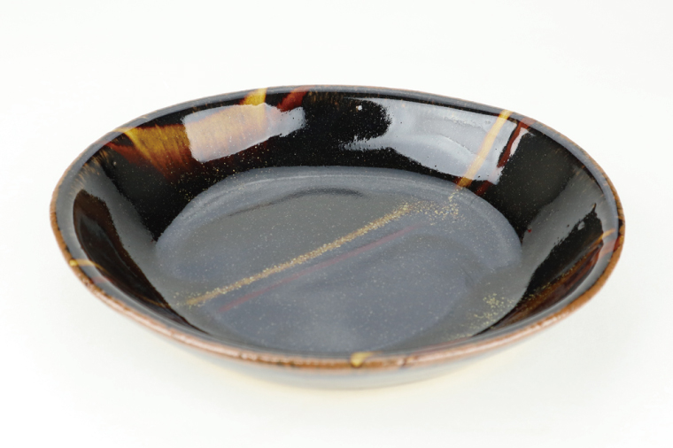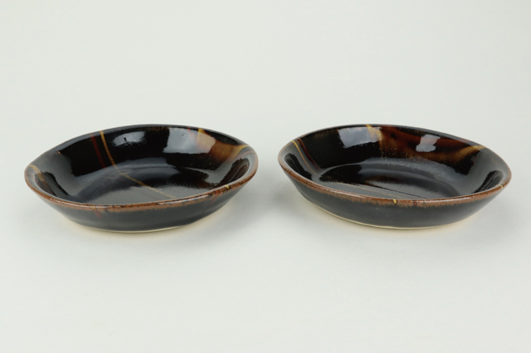 - AT007 益子焼 萩原芳典 黒釉線紋楕円皿(小)セット