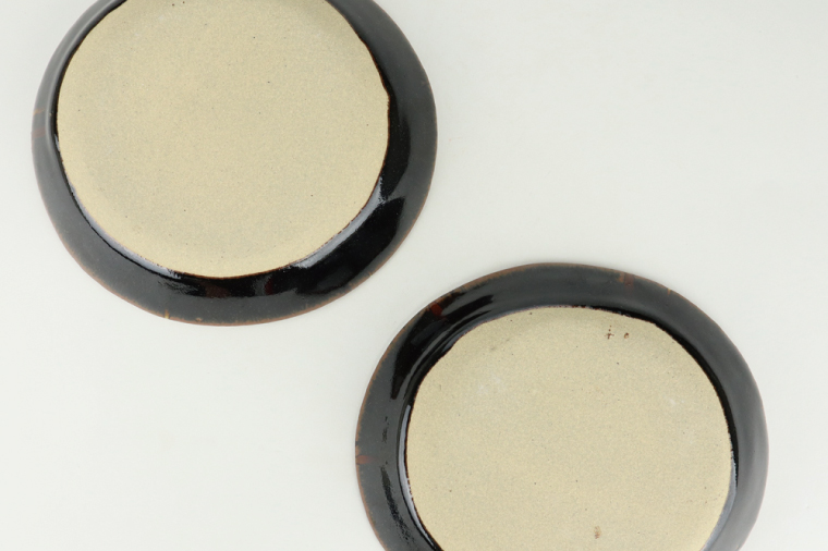 AT007 益子焼 萩原芳典 黒釉線紋楕円皿(小)セット