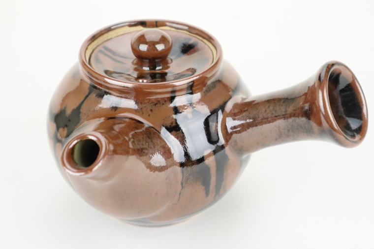 AT012 益子焼 萩原芳典 柿釉線紋茶器セット