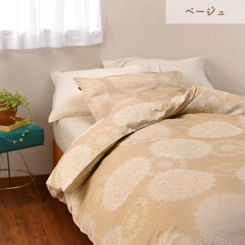 【ベージュ】<京都金桝>掛け布団カバー(クロッシェ)シングル 綿100% ◇≪布団カバー 羽毛用カバー ロングセラー レース柄 サテン生地 やわらか なめらか 肌触り抜群 羽毛布団に相性良い ふとんカバー 心地いい ナチュラル 北欧風 Able Future 日本製 京都亀岡産≫
