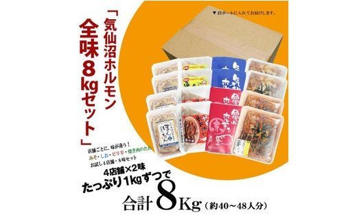 - 気仙沼ホルモン 全味楽しむ8kgセット (1kg×8種) [気仙沼さん 宮城県 気仙沼市 20563503] ホルモン 豚 ホルモン焼き 味付け 味噌 塩 ピリ辛 冷凍 焼肉 BBQ