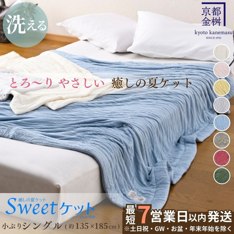 - 【7営業日以内発送】<京都金桝>Sweetケット 洗える 癒しの夏ケット【シングル】 | 夏用 柔らか とろける 肌触り 軽量 ウォッシャブル タオルケット 手づくり スウィートケット 日本製 新生活