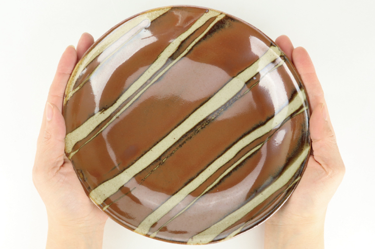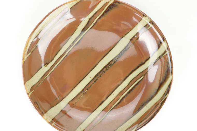 - AT009 益子焼 萩原芳典 柿釉線紋楕円皿セット