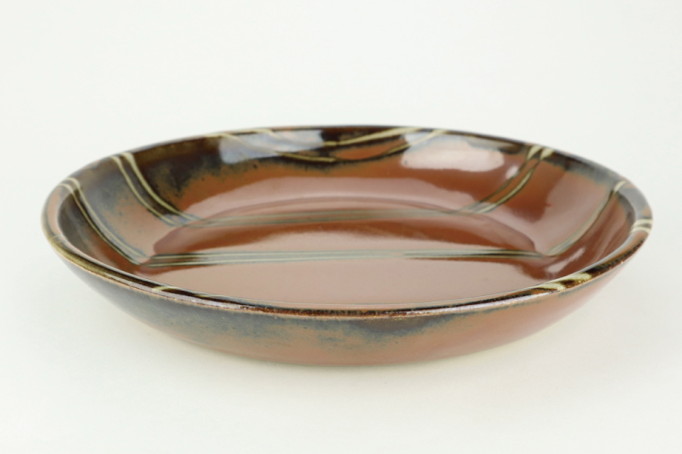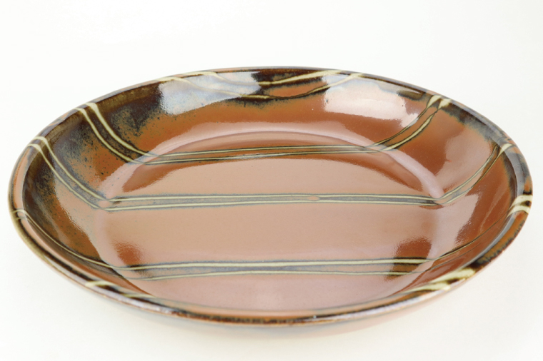 - AT011 益子焼 萩原芳典 柿釉線紋平鉢