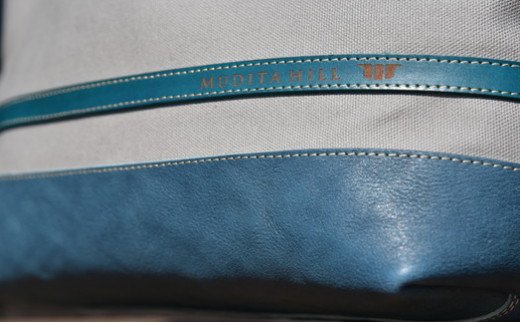 旅行にも普段使いにも最適 革と地産帆布で作ったボディバッグ 琵琶湖ブルー【CC21W】