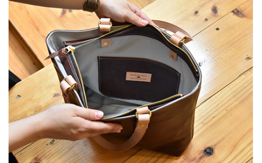 - 近江牛レザーを贅沢に使ったトートバッグ ダークウォルナット【CC29W】