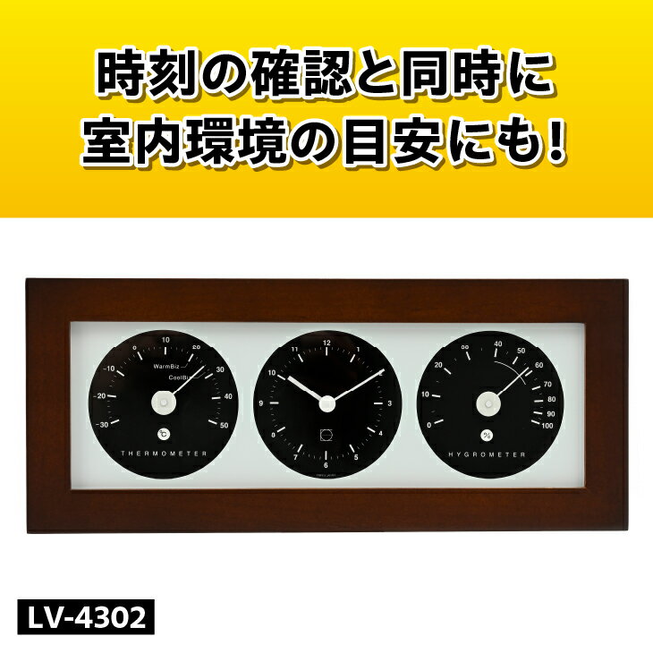 【ふるさと納税】【10月1日より価格改定】 リビ・ウッディ温・湿クロック LV-4302 温湿度計 時計 感染症対策 健康管理 天然木枠 シンプル モダン インテリア 置き掛け兼用 [AJ089]