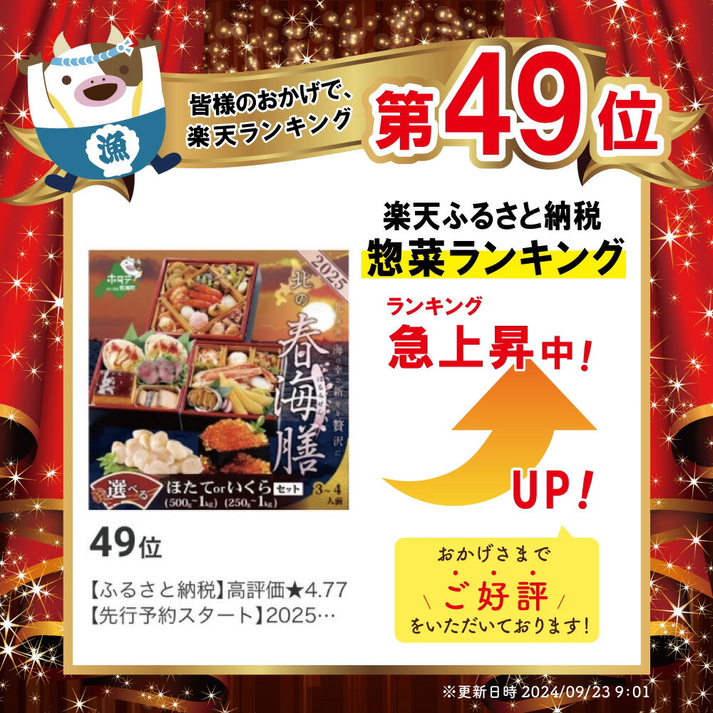 - 【ふるさと納税】高評価★4.60 【先行予約】2026お正月 北海道海鮮 おせち 北の春海膳 (はるみぜん) ほたて または いくら セット ( ふるさと納税 おせち 北海道 御節 ふるさと 海鮮 おせち ホタテ いくら ふるさと納税 おせち料理 お節 御節 北海道 別海町 )