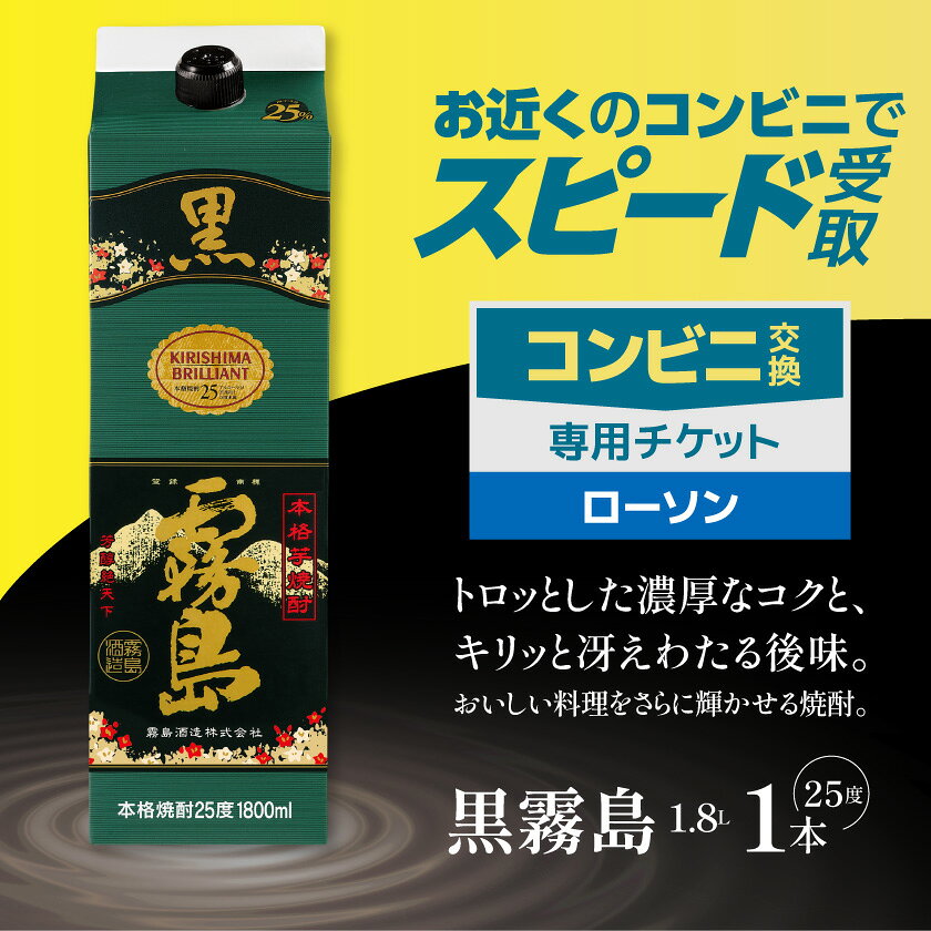 【ふるさと納税】コンビニ交換専用チケット(ローソン)黒霧島25度1.8L×1本 - 黒霧島 1.8L 25度 1本 コンビニ交換 チケット チケットコード 店頭で受け取り ローソン専用 送料無料 C7-N902 【宮崎県都城市は2年連続ふるさと納税日本一!】