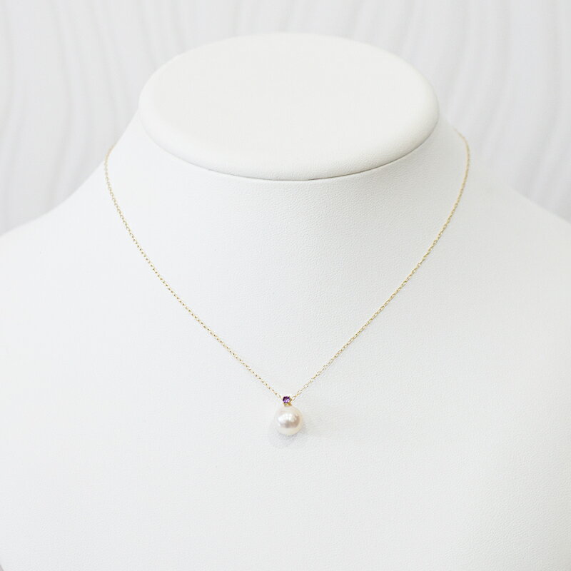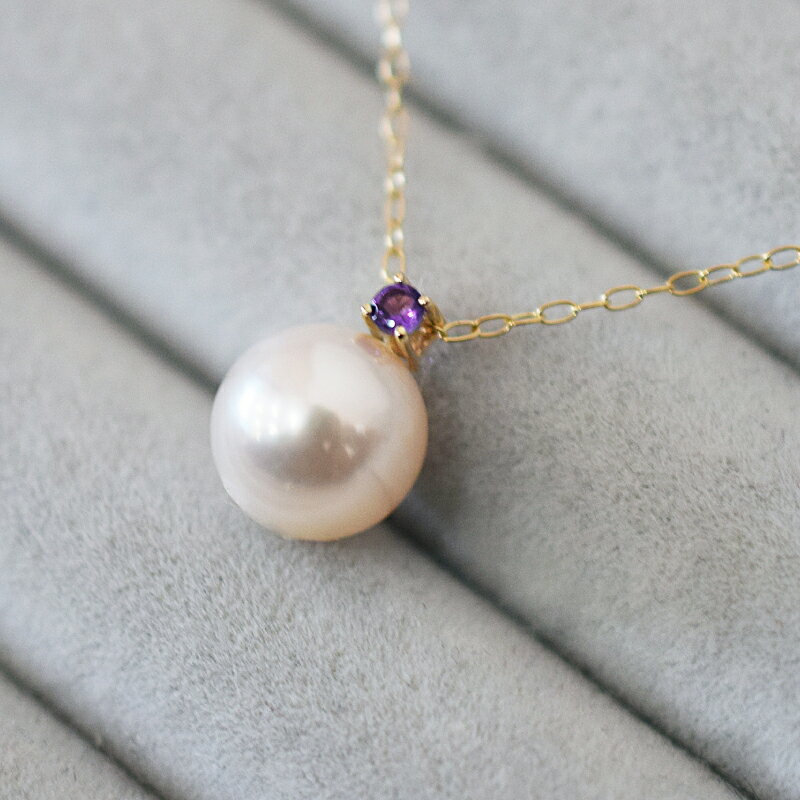 - 【ふるさと納税】あこや真珠 ペンダント ネックレス 8mm - 8.5mm K10 ホワイトピンク 本真珠 誕生石 2月 アメシスト 半貴石 選べる 金具素材 K10YG K10WG イエローゴールド ホワイトゴールド 品質保証書 ジュエリーケース 真珠てりクロス お取り寄せ 熊本県 天草市 送料無料
