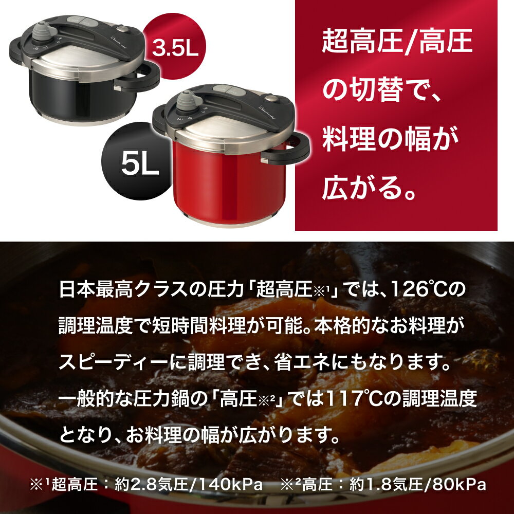 - キッチン・食卓を華やかに演出 オースプラス両手圧力鍋 5L ブラック | 圧力鍋 鍋 5L 4-5人用 ブラック IH対応 圧力なべ 調理器具 ワンダーシェフ オースプラス 時短 高圧 超高圧 切替 収納 お祝い ギフト 結婚祝い 大阪府 豊中市