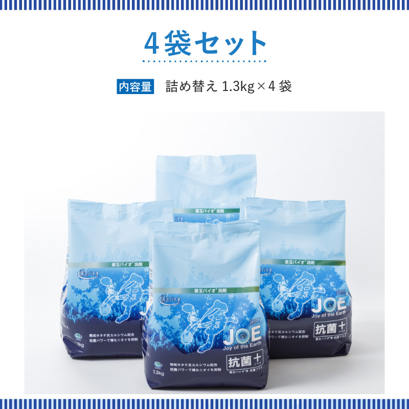 善玉バイオ浄抗菌プラス1.3kg×4袋(袋商品のみ) :エコ洗剤セットで衣類も環境もクリーンに!