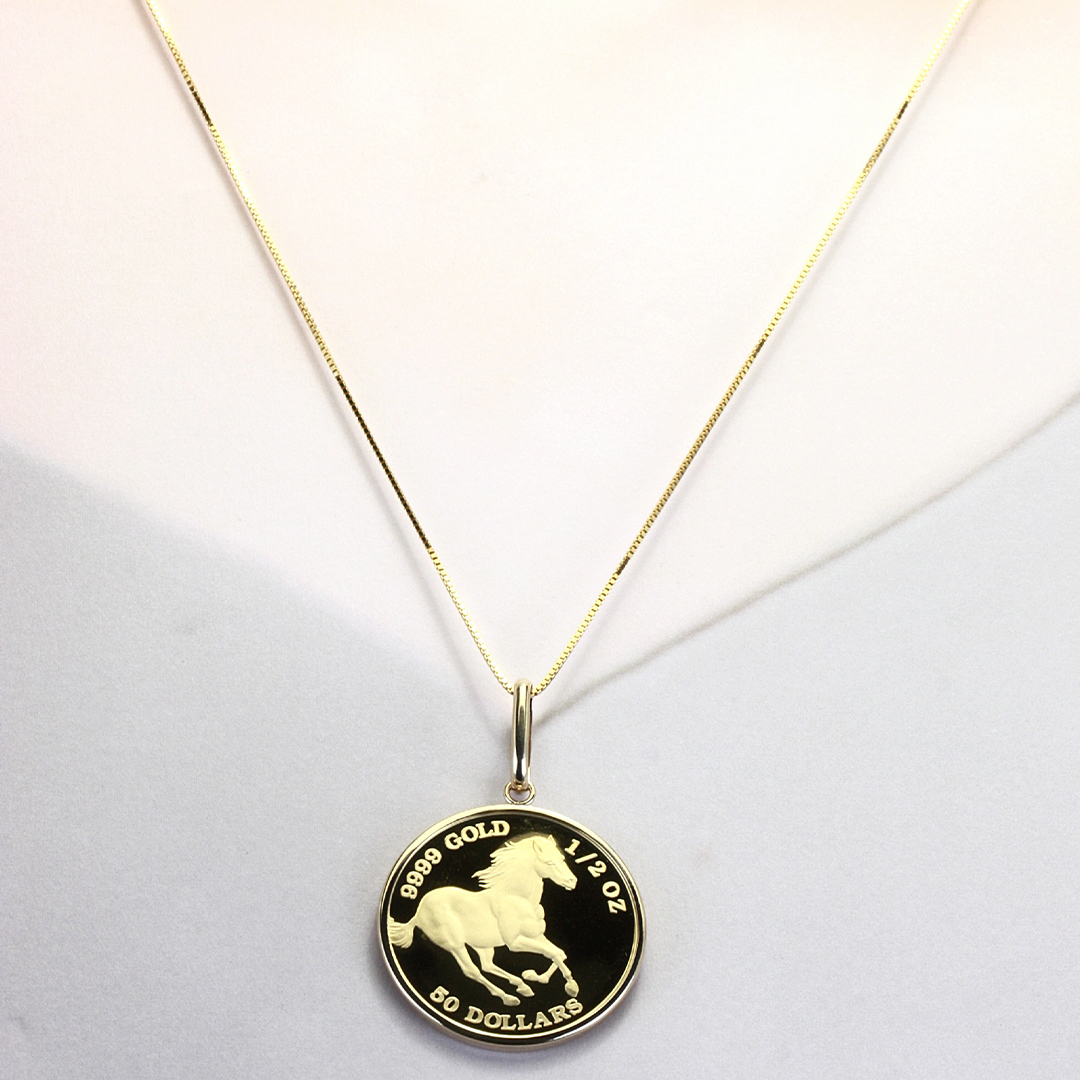 - 24金 純金 フォースコイン 1/2oz ペンダントトップ ギフト プレゼント ジュエリー ジュエリーマーノ 桜川市 [AH134sa]