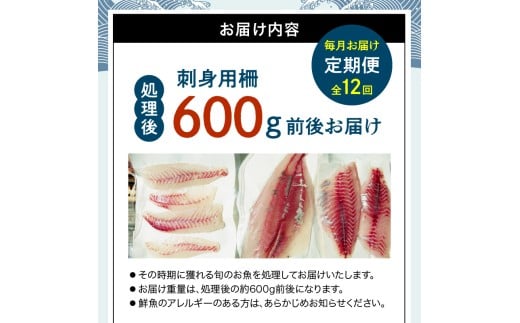 S121-T05_【全12回 連続 指定日必須】 お刺身用柵定期便
