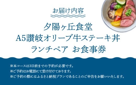 夕陽ヶ丘食堂 A5讃岐オリーブ牛ステーキ丼 ランチペア お食事券