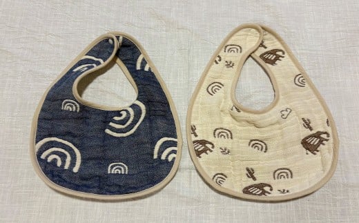 - 6重ガーゼ織スタイ ×1枚 (ネイビー) + 6重ガーゼ織ハンカチ ×2枚 (ベージュ・ネイビー) スタイ よだれかけ ハンカチ ガーゼ コットン 綿100% ベビー用品 出産祝い プレゼント ギフト 日本製