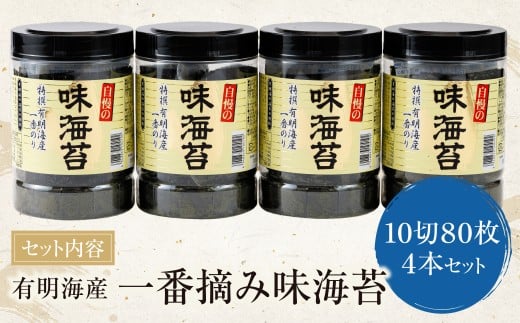 - W26-34 福岡有明のり一番摘み 大丸ボトル味海苔 10切80枚 4本セット のり 海苔 味海苔 小分け 有明産 味付けのり 国産 おにぎり お弁当 ごはんのお供 人気 海苔 海産物 乾物 おすすめ 海苔 あじのり