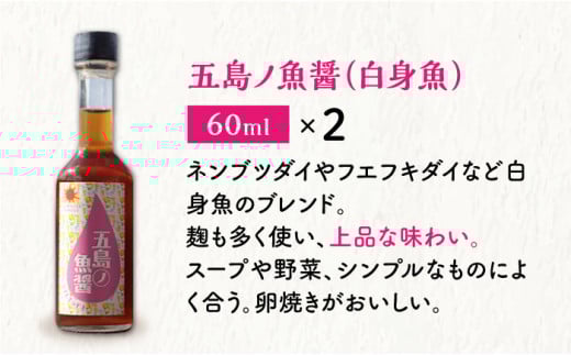 【全6回定期便】 五島ノ 魚醤 60ml 3種×2本 (青魚・白身魚・イカ) 6本セット 《factory333》 [DAS010] 魚醬 調味料 旨味 醤油 タレ 出汁 ダシ セット 常温 魚醤