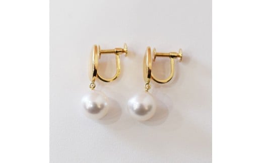 - S085-504_あこや真珠 天草 イヤリング 7.5mm - 8mm ホワイトピンク 真珠 楕円 K18YG