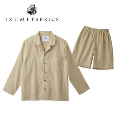 - 【男女兼用 サイズ:L】長袖×半ズボン プレミアムガーゼパジャマ (カラー:シャンパンベージュ)【1415572】