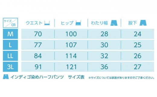 - 【3Lサイズ】九櫻刺子ハーフパンツ インディゴ染め