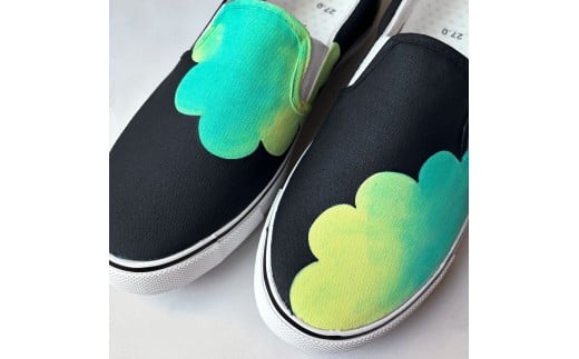 - スニーカー moku-surf D 手描きスリッポン 左右非対称デザイン レディース メンズ ユニセックス ワイズ 2E 25.0cm【受注制作】