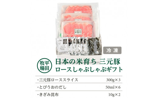 - 豚肉 三元豚ロースしゃぶしゃぶギフト 900g だし付き 豚 三元豚 ブランド豚 ロース しゃぶしゃぶ 上質ロース ごちそう とびうおだし きざみ 昆布 セット 冷凍 贈り物 贈答 ギフト 平牧 平田牧場 山形 酒田 SC0015