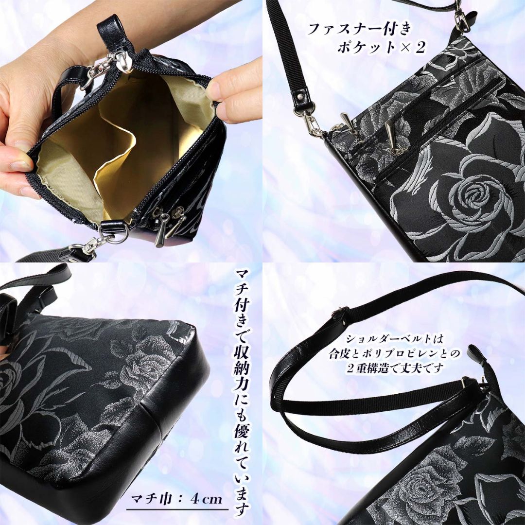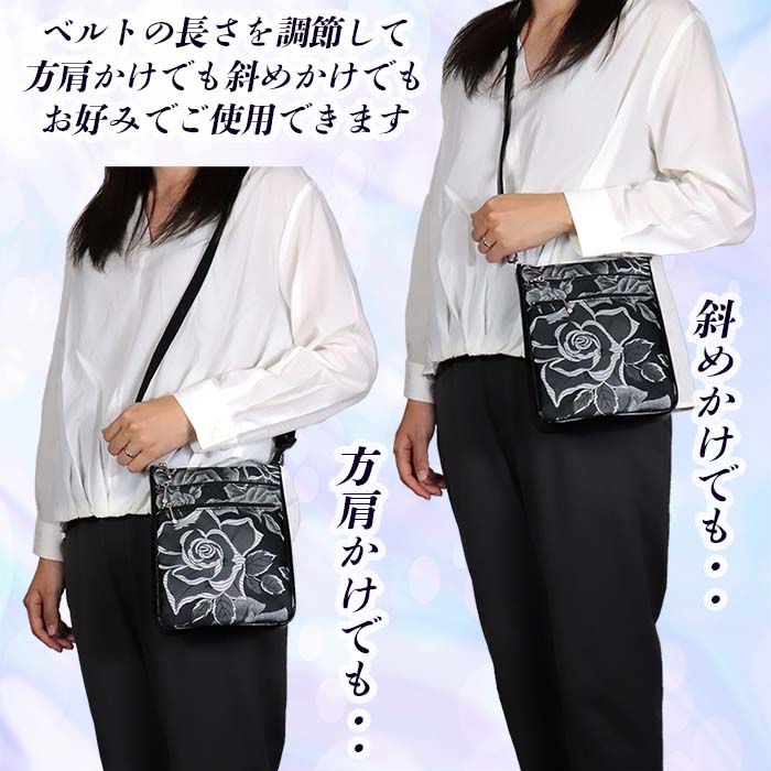- 【ふるさと納税】ローズ柄 シルバーグレー ポシェット BR-62 縦型 日本製 ミニショルダーバッグ レディース / まちづくり観光振興機構 傘生地 ブロケード織り 旅行 ウォーキング 防水 奈良県 田原本町