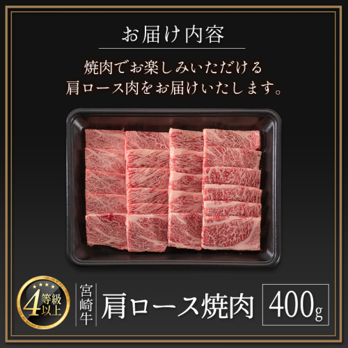 <肉質等級4等級>宮崎牛 肩ロース 焼肉 400g 国産 肉 牛肉 ご飯 おかず 炒め物 BBQ【B530-2510-90】
