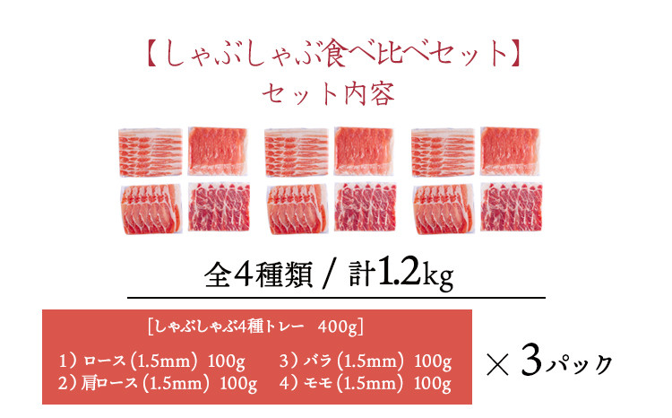 ソヤマポークのしゃぶしゃぶ食べ比べ4種セット1.2kg[肩ロース ロース バラ ロース 1.5㎜]TF0828-P00078