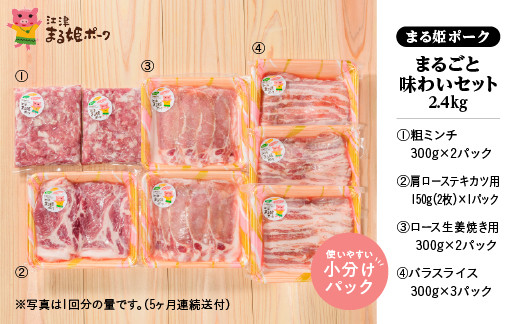 定期便 5ヶ月 まる姫ポーク まるごと味わいセット(ロース生姜焼き用・肩ローステキカツ用・バラスライス・粗ミンチ)2.4kg×5回(計12kg)【AK-32】|送料無料 国産 まる姫ポーク 豚肉 ぶた肉 肉 生姜焼き 肩ロース スライス 粗ミンチ 焼肉 BBQ 江津市|
