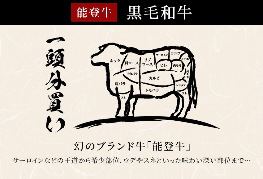 - 能登牛 一頭買い 24分割配送 牛肉 冷凍 肉 希少 和牛 とろける 柔らか 口当たり お肉 ブランド牛 黒毛和牛 高品質 やきにく 焼き肉 すき焼き 炒め物 牛丼 BBQ 煮込み カレー 肉じゃが お祝い ふるさと納税 石川 能登 羽咋 能登半島 災害支援 復興 支援