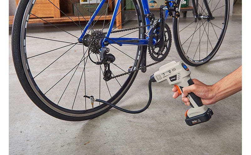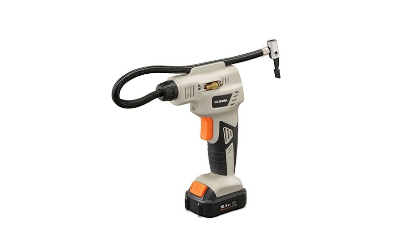 - 充電式エアコンプレッサ10.8V JAC10TC サンドベージュ 電動空気入れ エアーコンプレッサー 小型 10.8V 充電式 コードレス アイリスオーヤマ Type-C充電 バッテリー 自転車 自動車 バイク タイヤ ロードバイク ボール 空気入れ 軽量