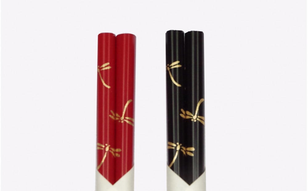 輪島うるし箸 とんぼ蒔絵 ペア(黒・朱)