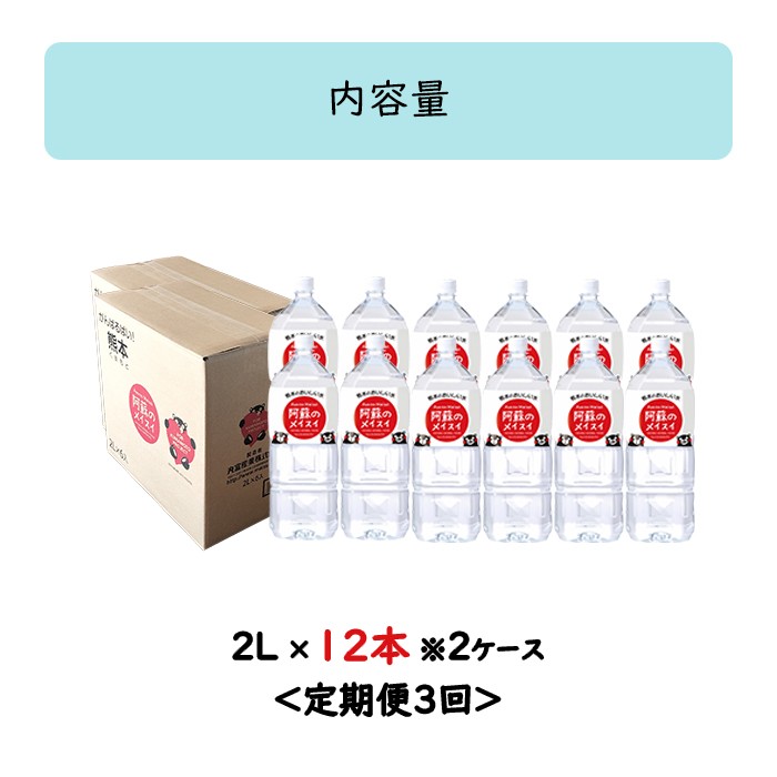 - 【ふるくま】定期便 3回 阿蘇のメイスイ 阿蘇山 天然水 2L × 12本 2ケース 熊本 阿蘇 水 みず 飲料 くまモンラベル 熊本県 ミネラルウォーター 非加熱殺菌 賞味期限2年 730日 備蓄 保存用
