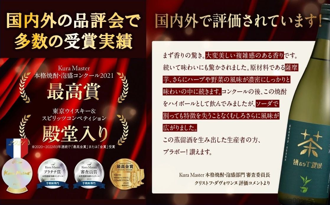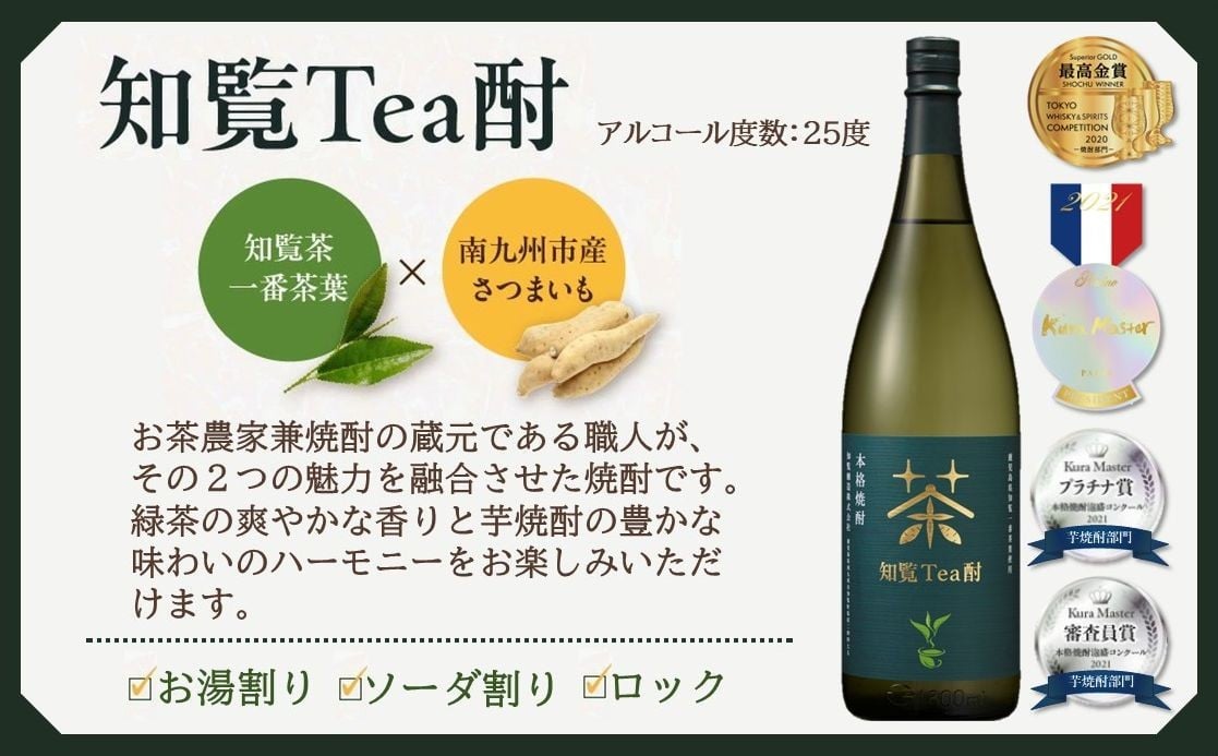- 024-10 「知覧Tea酎・知覧Tea酎ほうじ茶・ちらんちらん」1.8L×3本セット