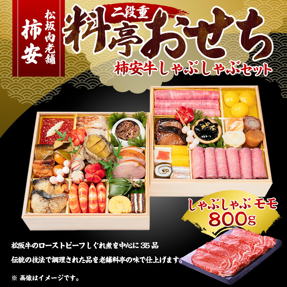 【ふるさと納税】松阪肉老舗 柿安 料亭おせち 二段重 柿安牛しゃぶしゃぶセット 牛肉 お肉 モモ もも肉 しゃぶしゃぶ(800g) 松阪牛 ローストビーフ いくら ずわい蟹真丈 水産物 お節 御節 おせち料理 お正月 年末年始 三重県 桑名市 送料無料 【2025年12月31日着】