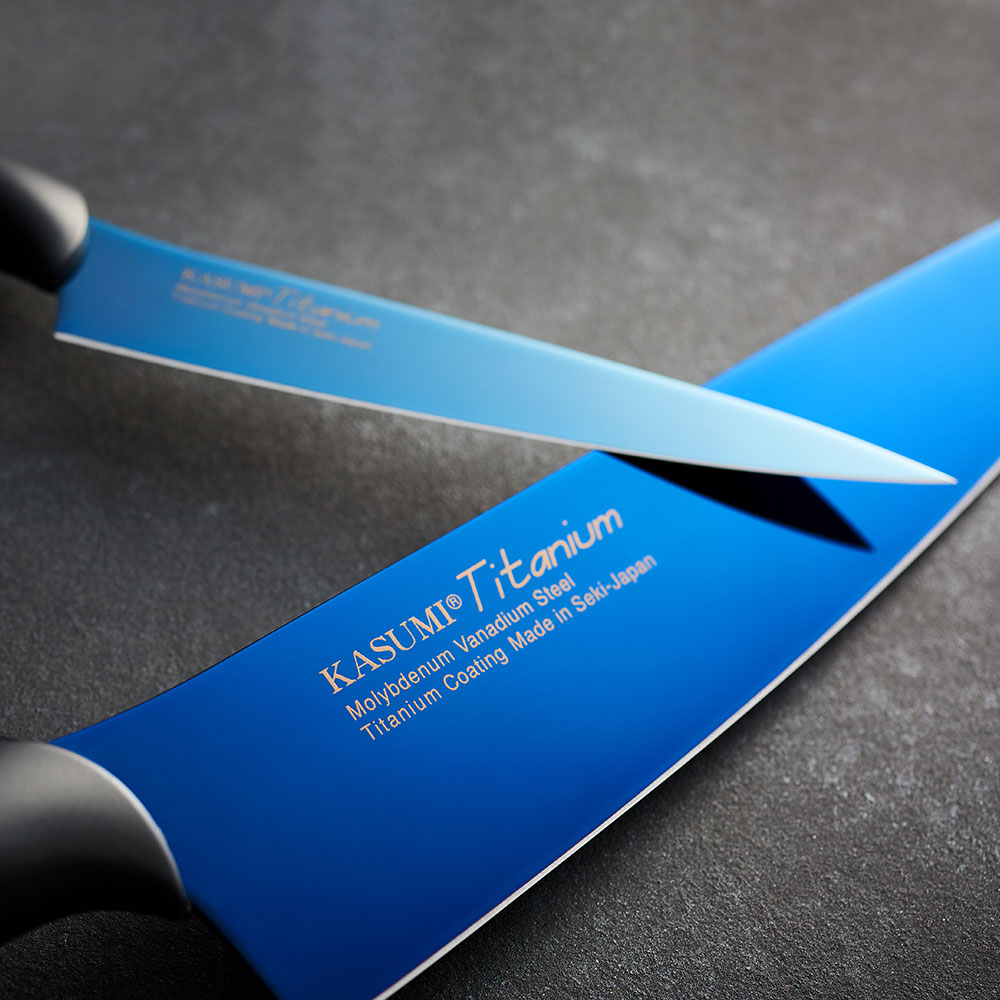 - 【ふるさと納税】三徳包丁 万能包丁 KASUMI 霞 チタンコーティング 18cm 【最長6ヶ月を目安に配送】 青い 蒼い 話題 青 蒼 youtube ギフト 関市 包丁 ブランド 日本製 キッチン用品 調理器具